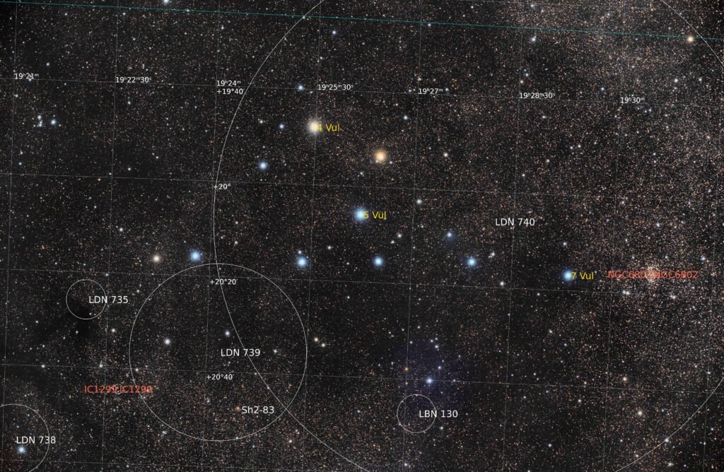 Der Asterismus liegt im Sternbild Fuchs am Nordsternhimmel. Der geometrische Eindruck der helleren Einzelsterne ist der Grund für den Eigennamen Kleiderbügel oder Kleiderbügelhaufen. Mit bloßem Auge ist ein diffuser Fleck zu erkennen, mit dem Fernglas oder kleinen Teleskop erkennt man die charakteristische Form.