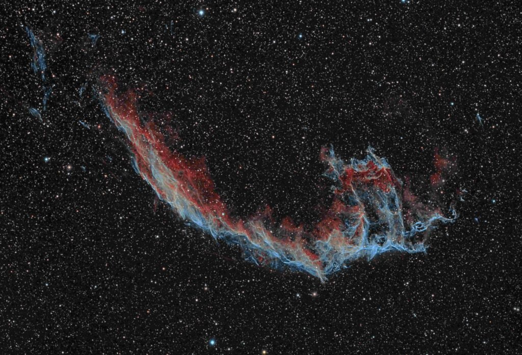 Der Cirrusnebel (auch als Schleier-Nebel, englisch Veil nebula bezeichnet) ist der im optischen Spektrum sichtbare Teil des Cygnusbogens, einer Ansammlung von Emissions- und Reflexionsnebeln, die sich in einer Entfernung von rund 2500 Lichtjahren im Sternbild Schwan befinden. Sie sind zusammen der Überrest einer Supernova, die vor ca. 8.000 Jahren stattfand.